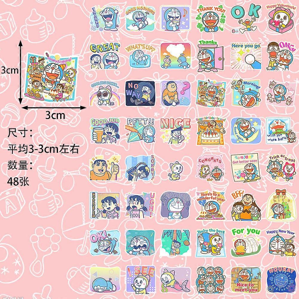48pcs/set Anime Cute Doraemon Stickers Can Be Used for Desktop Phone Cases, Laptops, and Other Decorative Flat Stickers 3x3cm