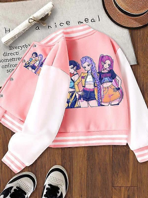 Girls Halloween Christmas Short Baseball Jacket, Casual Sports School Uniform, Anime Character Design, Elastic Fabric, Fall Winter Outerwear