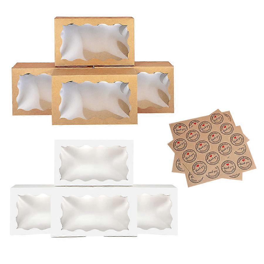 12/24 cake carrier, rectangular box with lid, white, brown, bread box with window, for pies, doughnuts, muffins, weddings, parti