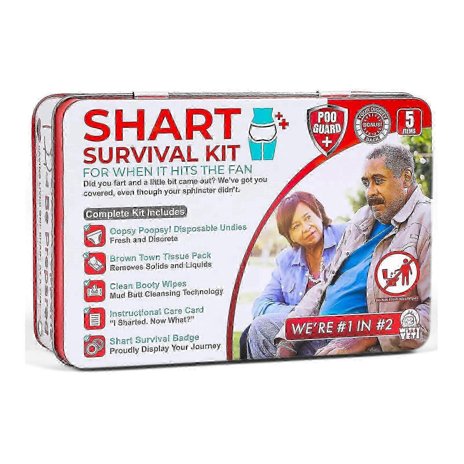 Funny Shart Survival Kit - Ultimate Poop Prank Gag Gift Set Contains Wet Wipes, Underwear, Hilarious Badge, Novelty Fart Potty Pack Great for Friendsd