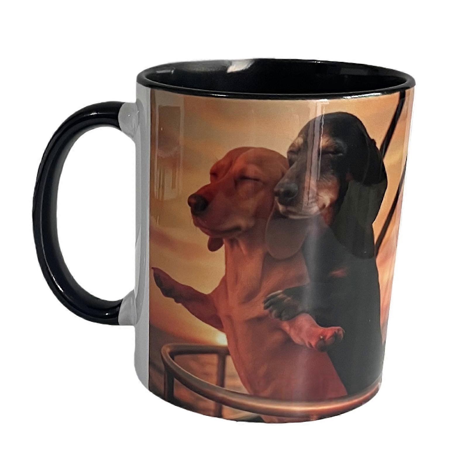 Couple Dachshund Love Coffee Mug with Romantics Pose Design Ceramic Hot Cold Beverages Cup Gift for Couples Dog Lover Multicolor