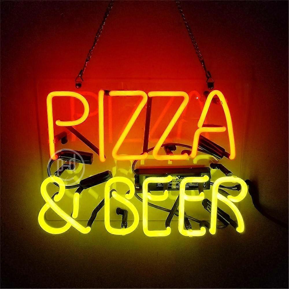 Pizza & Beer Neon Sign, Real Glass Tube Wall Art for Kitchen & Bar, Fun Night Light Gift, 14"x9"