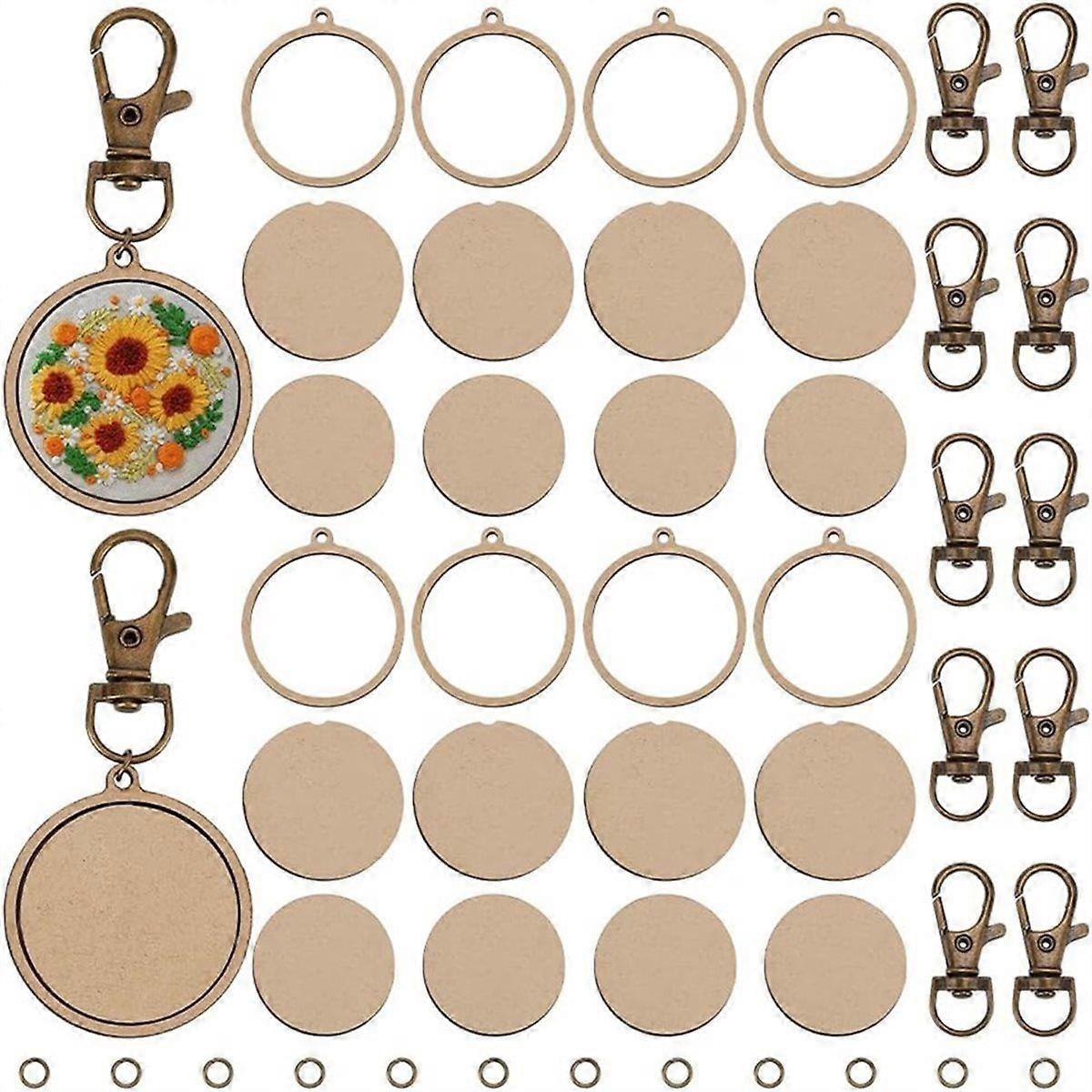 12 Set Mini Wooden Embroidery Hoop Keychain Wooden Round Embroidery Hoops with Keychain for Embroid