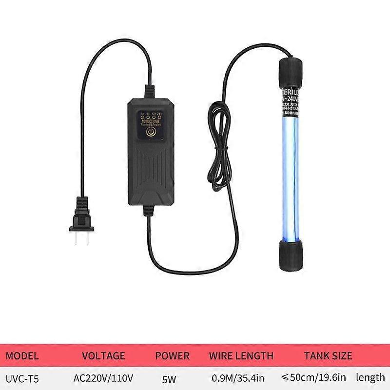 UV Sterilizer Lamp for Aquariums - Timer Optional, Glass Material Ultraviolet Disinfection Lamp EU