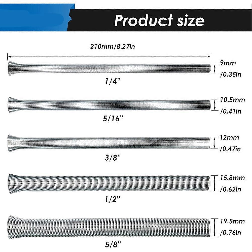 Spring Tubing Benders Kit 1/4, 5/16, 3/8, 1/2 and 5/8 Inch 5 in 1 Tube Bender Set for Copper, Brass, Thin Steel Tube