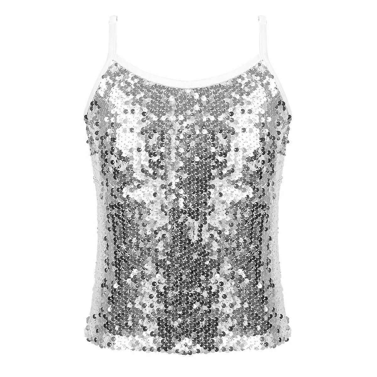 Girls Sparkle Sequins Dance Crop Top Camisole Tank Tops Performance Vest Shirt
