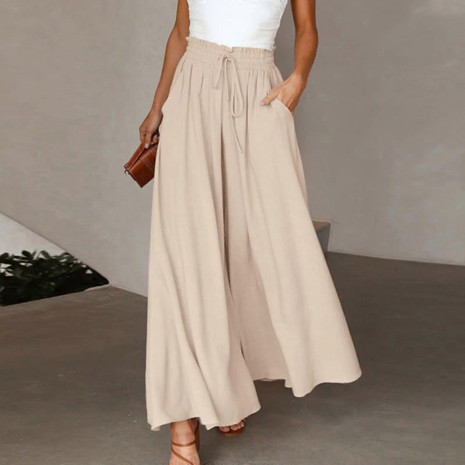 Fashionable high waisted wide leg pants for women summer Loose and comfortable Solid Color Trousers Wide Elastic Belt sweatpants
