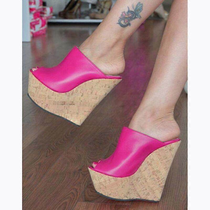 Fashion Women Heels Platform Wedges Pumps Shoes Women Fuchsia Plus Size 4-20