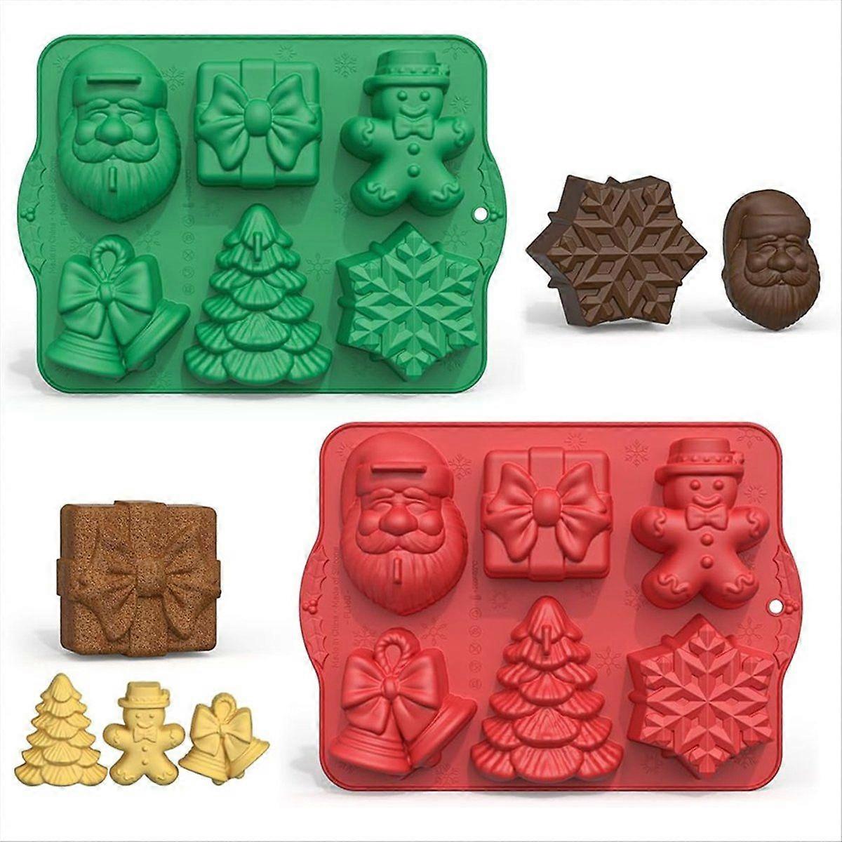 2PCS Large Christmas Silicone Molds Handmade Soap Chocolate Jelly Candy Candles Food Grade Tray 6 Ho