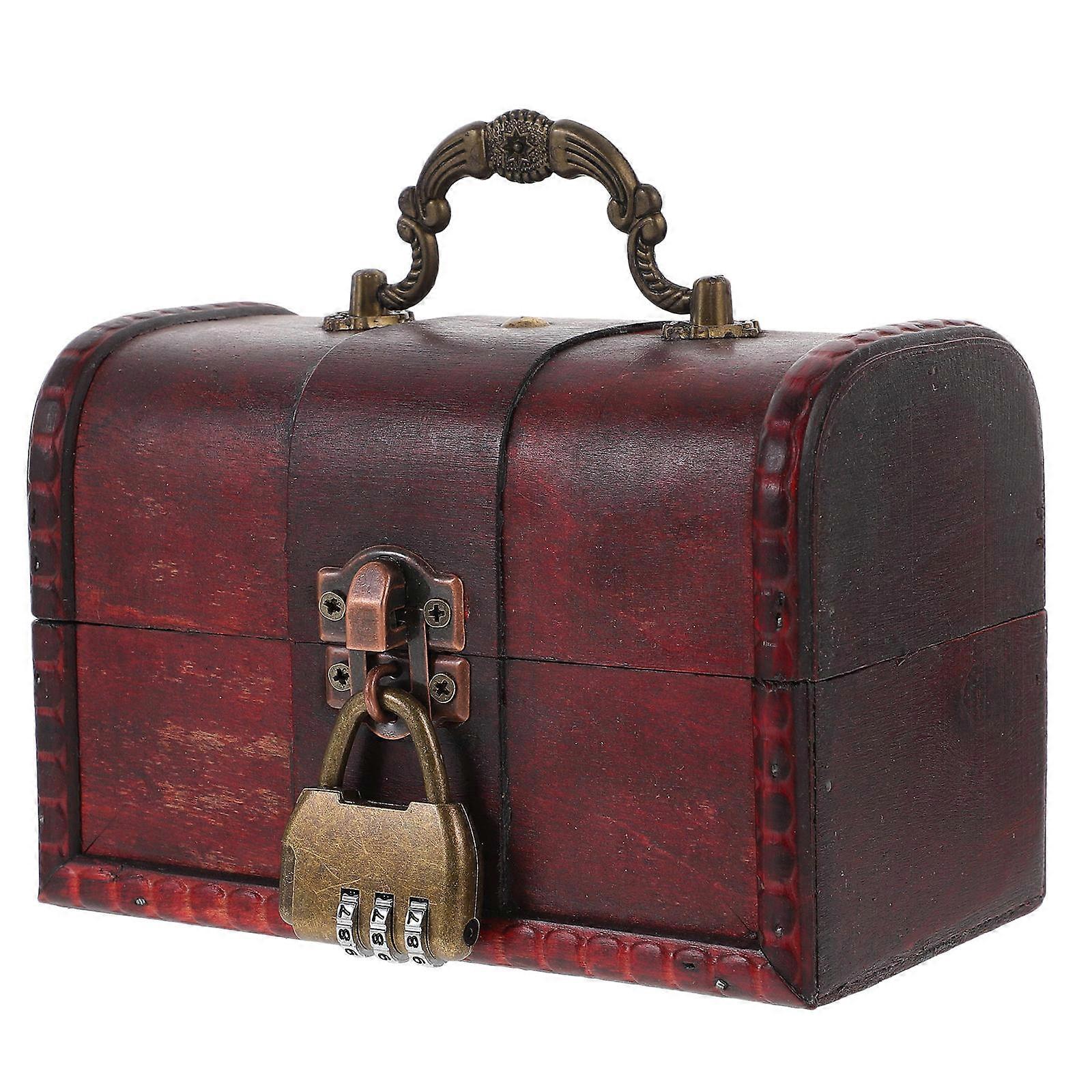 Vintage Jewelry Box Wooden Storage Box for 5Pcs Lockable Treasure Chest