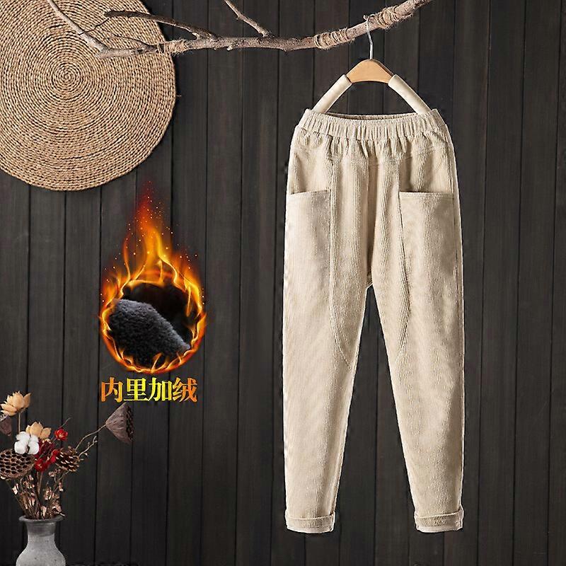 Women Elastic Waist Corduroy Pants Winter Warm Fleece Loose Cargo Baggy Trousers