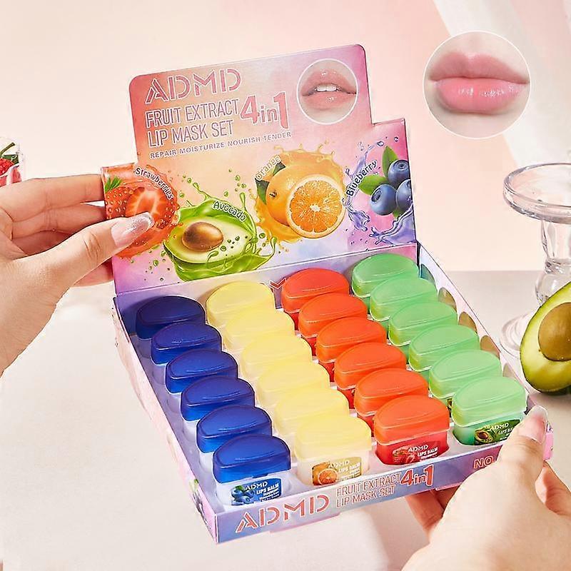 24/8/4pcs Set Multifruit Lip Mask Sleeping Lip Mask Lipstick Base Nourishing Moisturizing Lip Mask Compact Portable Easy to Carry Moisture H