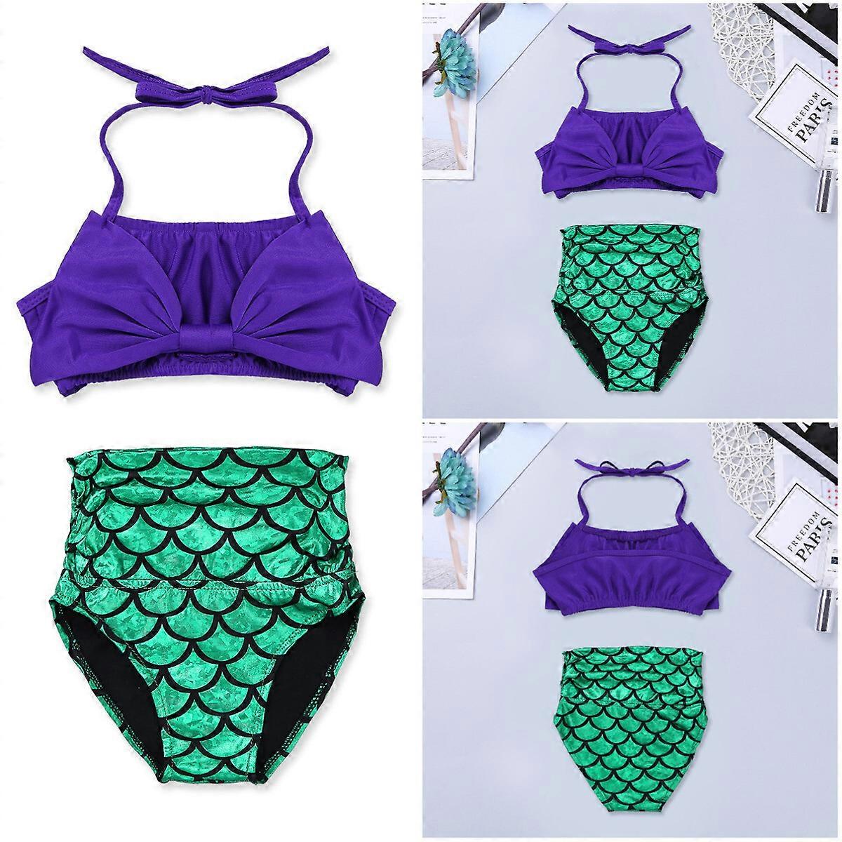 Kids Girls Swimwear Mermaid Outfits Halter Top Bottom Bathing Suits Beachwear