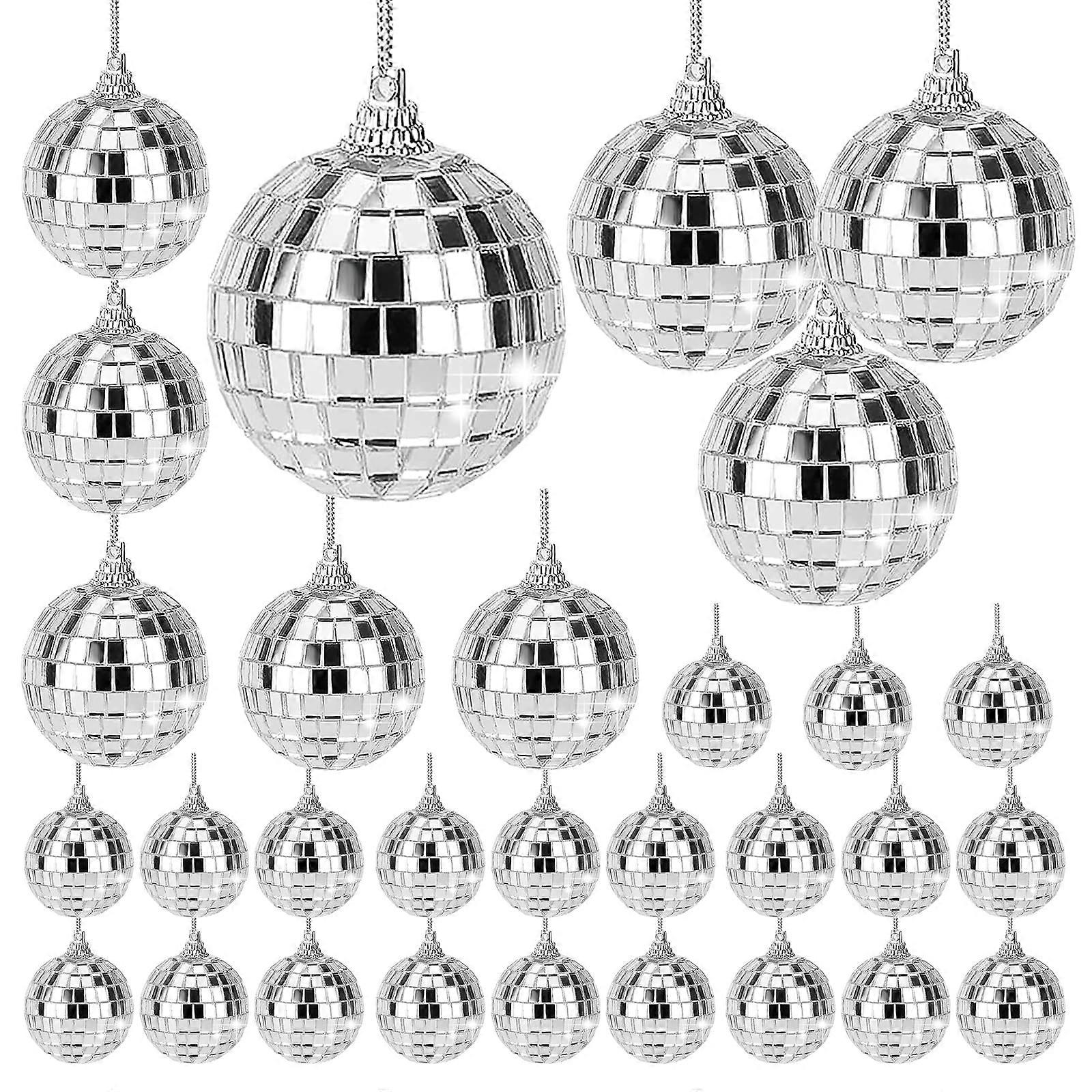Disco Ball Ornaments Set 30pcs Silver Mirror Balls Sparkling Light Reflection for Party Wedding Christmas Tree Decor