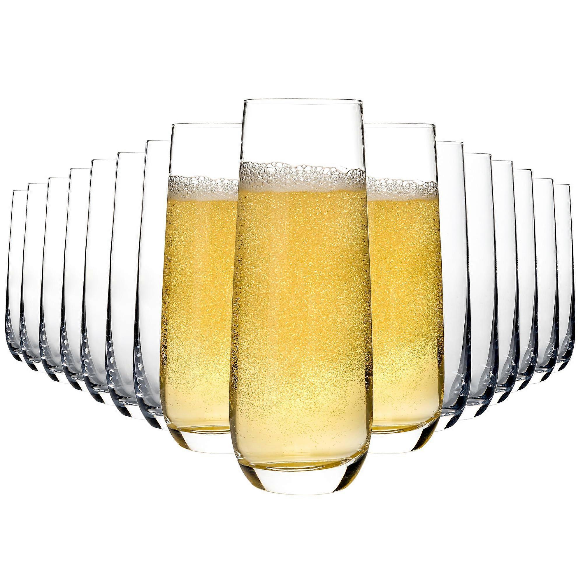 Set of 16 Stemless Champagne Flutes 8.5 oz Crystal Clear Prosecco and Mimosa Glasses Dishwasher Safe