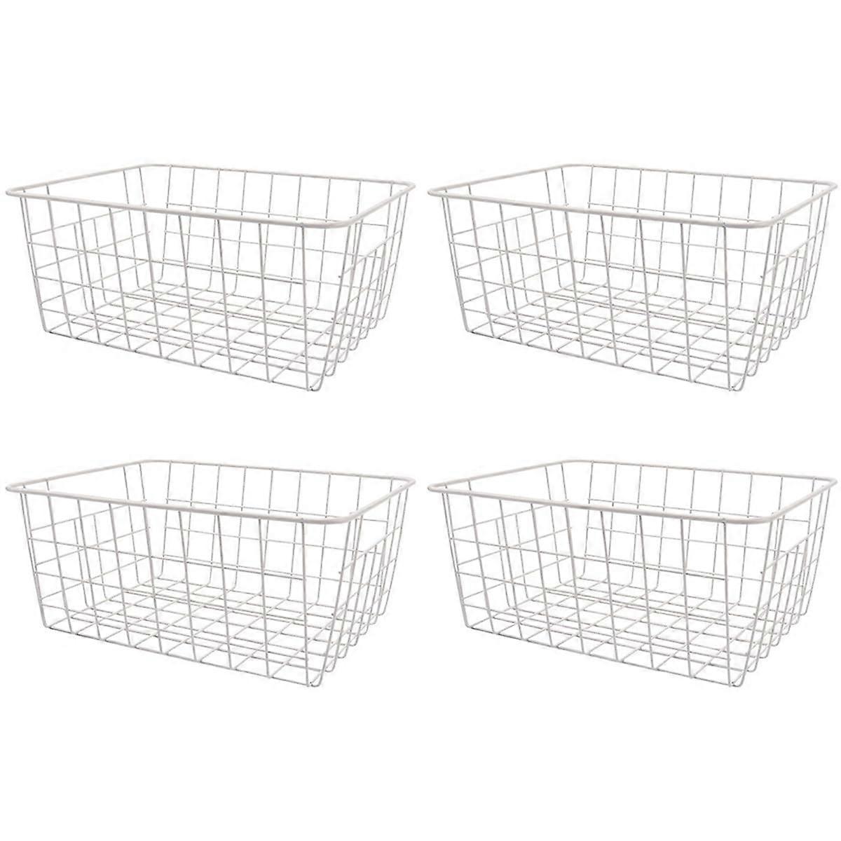 Freezer Storage Baskets 4 Pcs Stackable Wire Bins for Pantry and Chest or Upright Freezer White