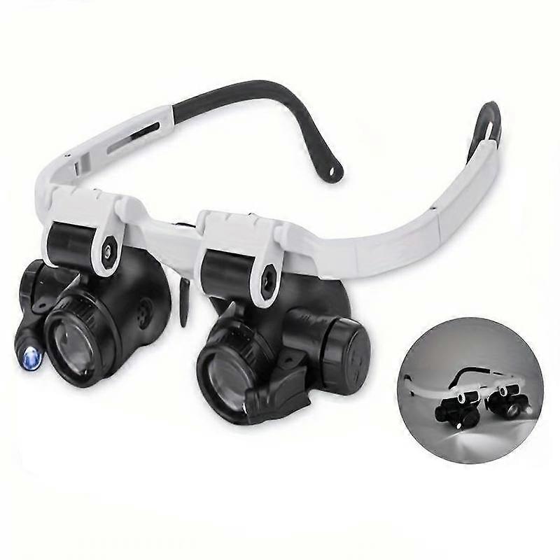 Head-Mounted Magnifier with 2 LED Lights, Detachable Lenses (15x), Adjustable 8-23x Power, Ideal for Watch Repair & Office Supplies