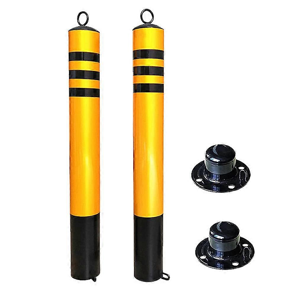 2Pcs Lockable Steel Parking Bollards with Reflective Safety Markings for Driveway Security