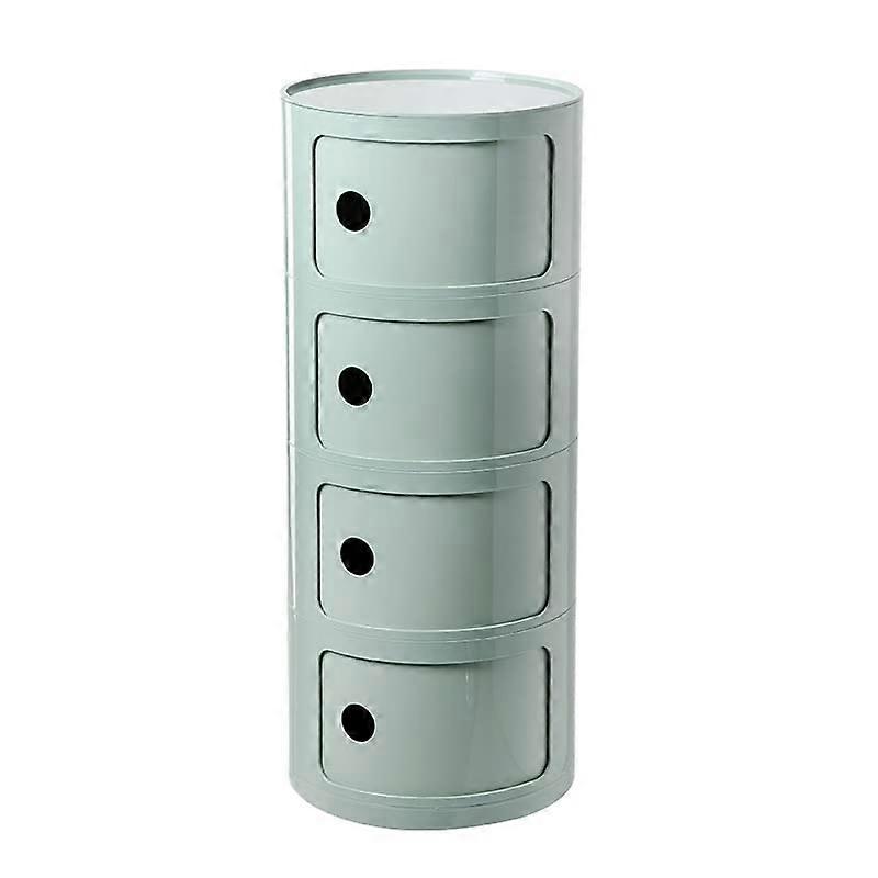 Nordic Round Bedside Table with Drawers and Sliding Door, 2/3/4 Tier Plastic Nightstand, Matcha Green 32x76cm