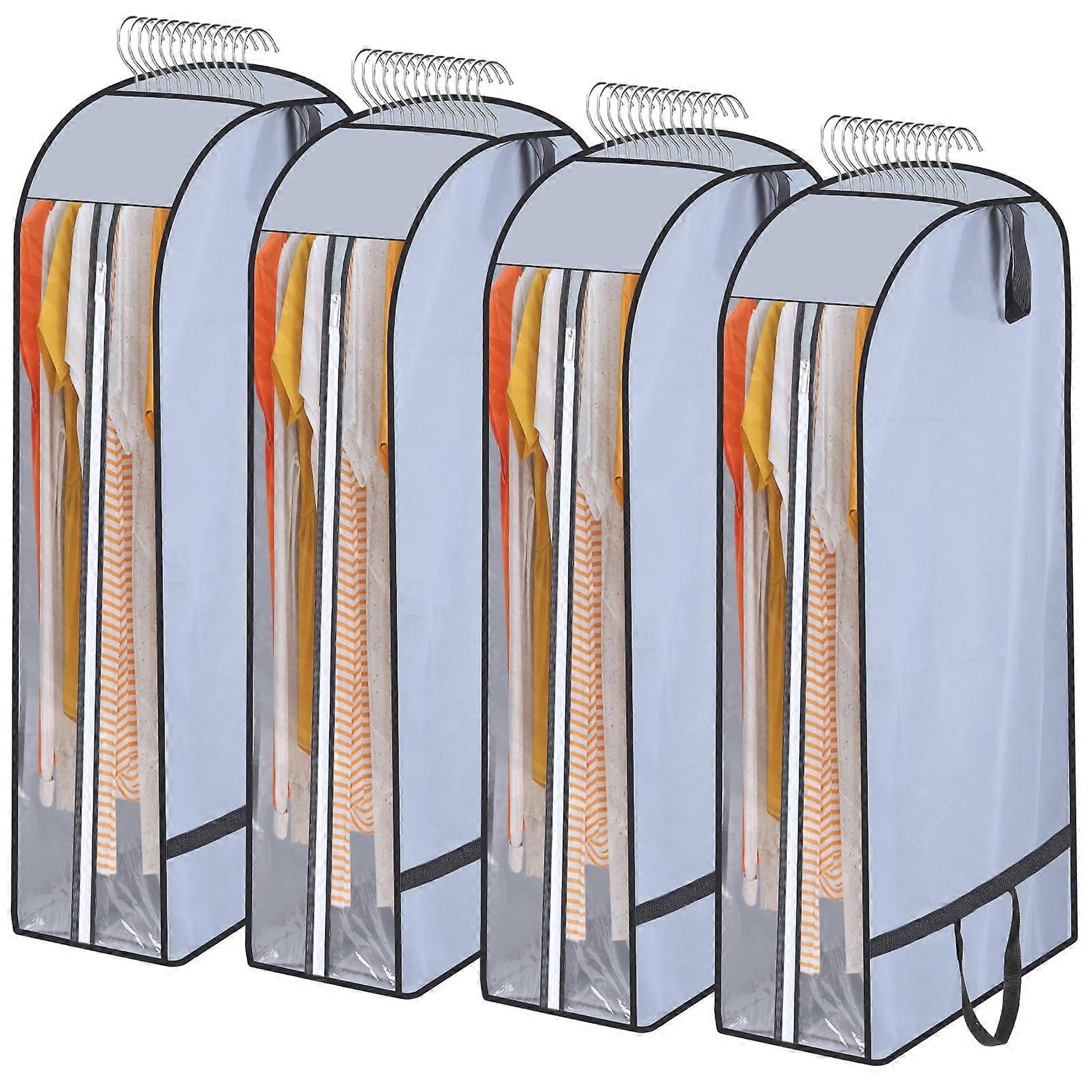 4 Pack 43' Garment Bags with 10' Gusset, Dustproof Clothes Storage Covers with Clear Side and Handles for Closet Organization (Grey)
