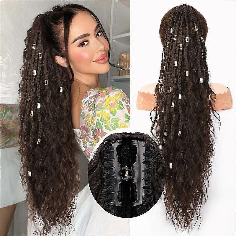 [New] Braids Ponytail Extension Claw with Braids 30" CurlyPony Tail Clip in Hair Extensions Fluffy Natural LookingSynthetic Hairpiece for wo