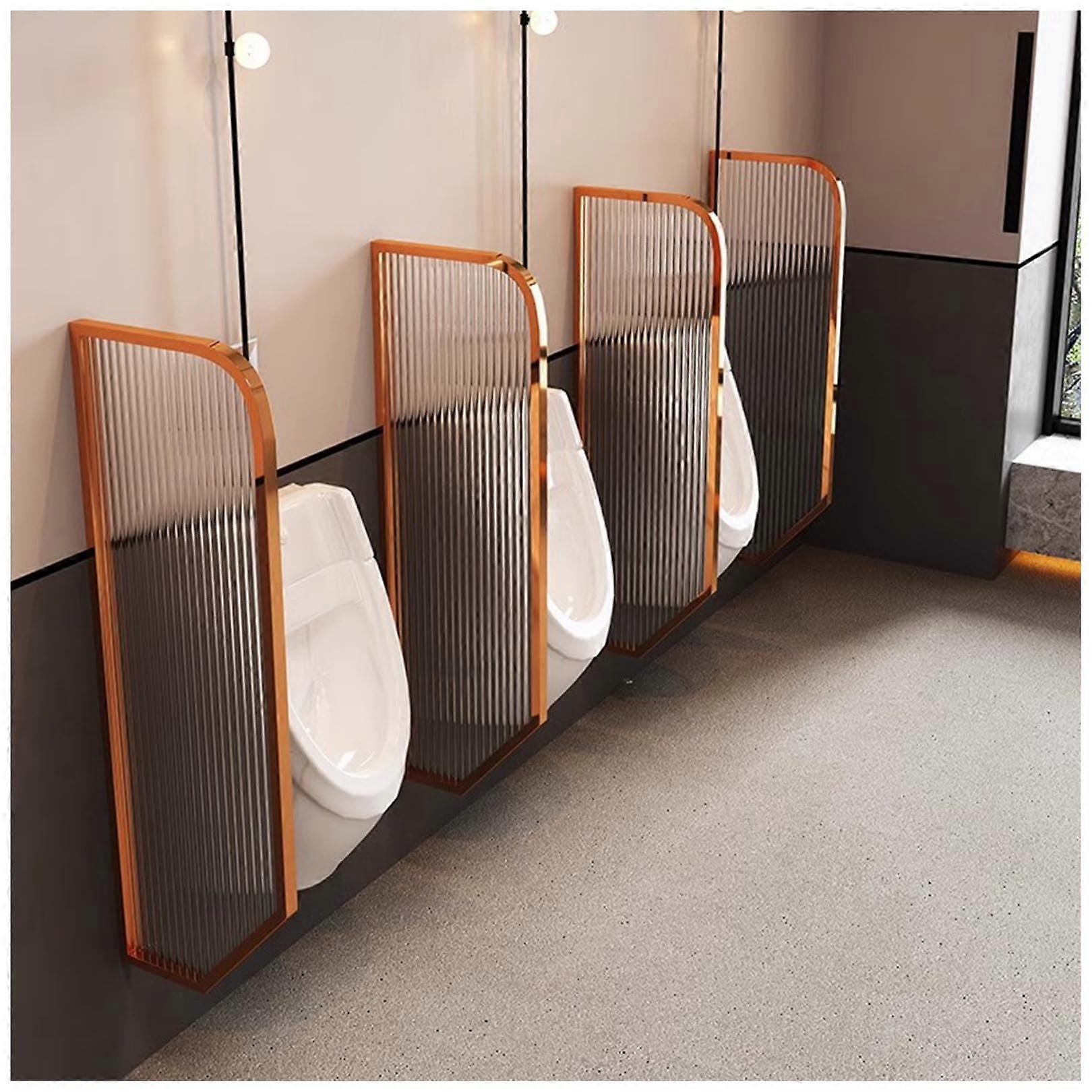 Tempered Glass Urinal Privacy Screen with Stainless Steel Frame, Rose Gold Wall Mounted Partition, 2 Pcs