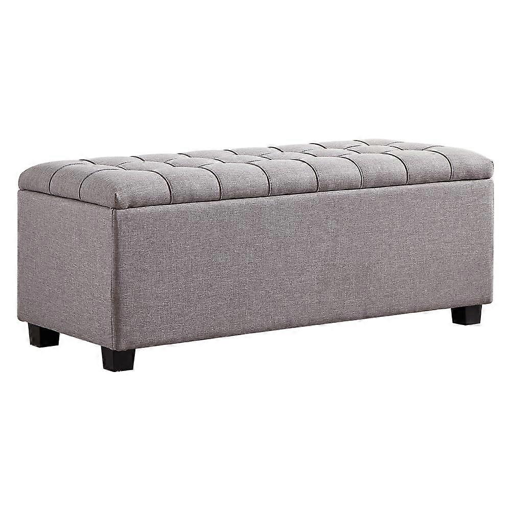 38Inch Grey Storage Ottoman Bench with Hinged Lid, Linen Seat for Bedroom, Living Room, Entryway