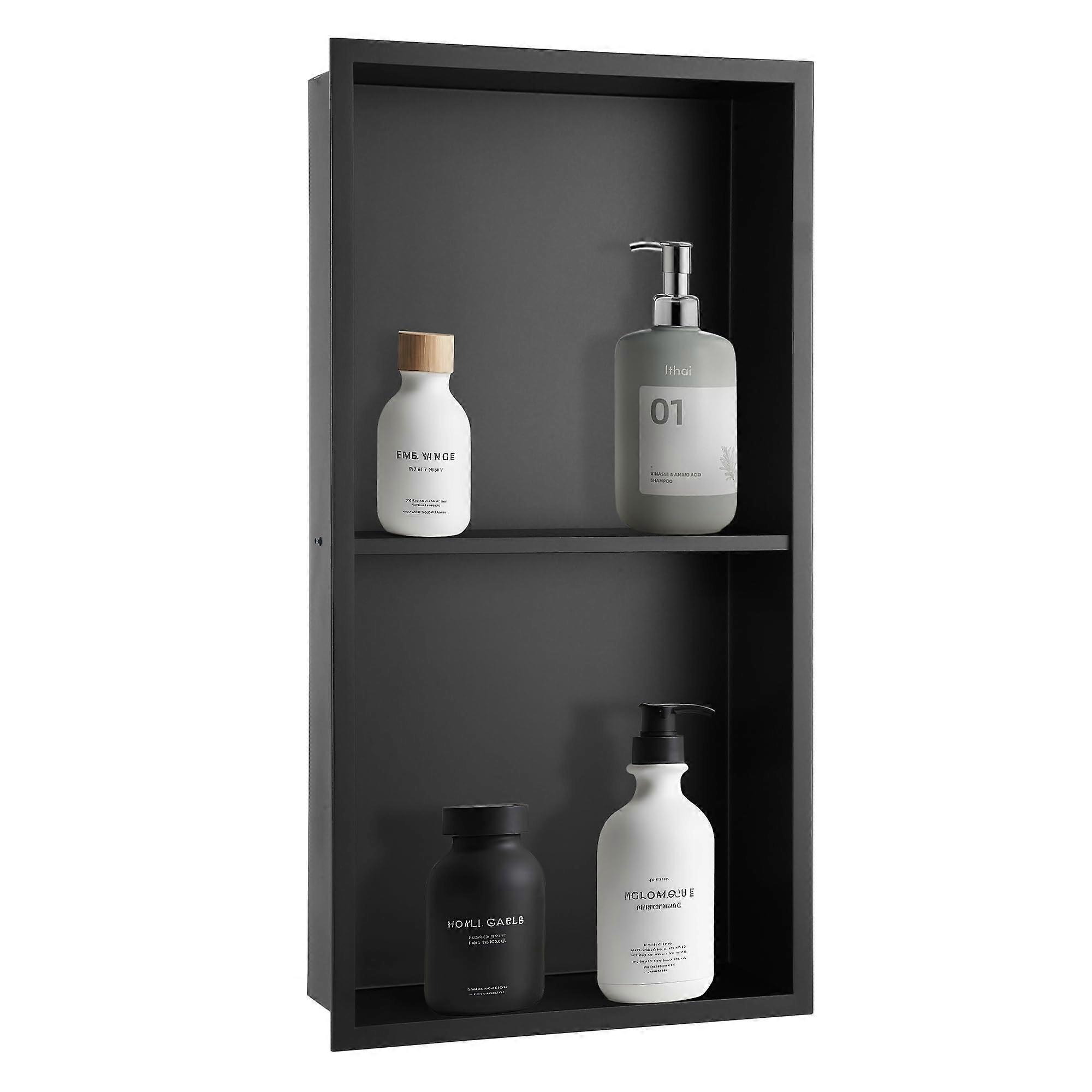 Matte Black 12x24 Stainless Steel Shower Niche, RustResistant NoTile Recessed Shelf for Bathroom