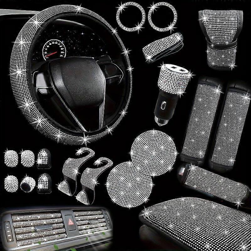 30Pcs Car Accessories Set Women Bling Universal Fit Steering Cover Shiny Frame Phone Holder Coasters Tools Car Accessories
