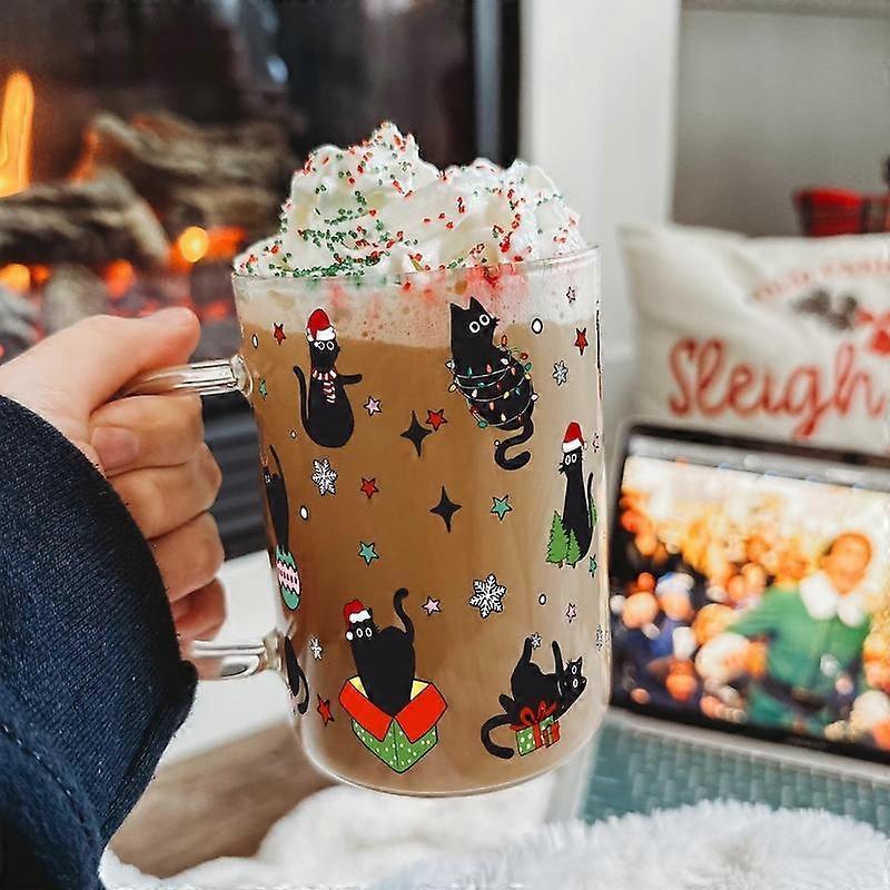 Sip-Sip Hooray! 17oz Christmas Glass Coffee Mug �C Holiday Tumbler with Lid & Straw, Christmastok Drinkware, Cute 2024 Gift for Friends Ceram