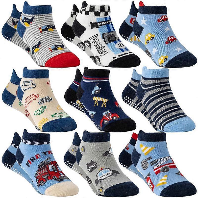 9 Pairs Of Baby Boys Toddlers Grips Socks Kids Non Slip Anti Skid Ankle Car Cotton No Show Socks With Grippers Gift Socks
