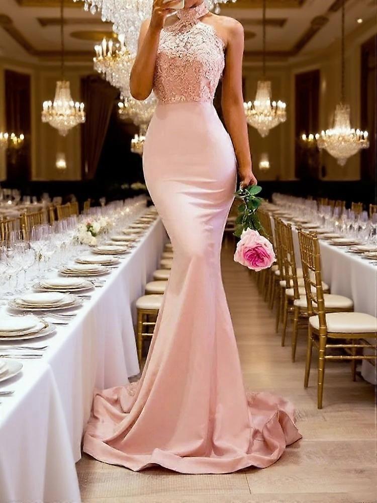 Halter Mermaid Prom Dress Sexy Open Back Evening Dress With Lace Appliques Girls Formal Party Gowns Customized