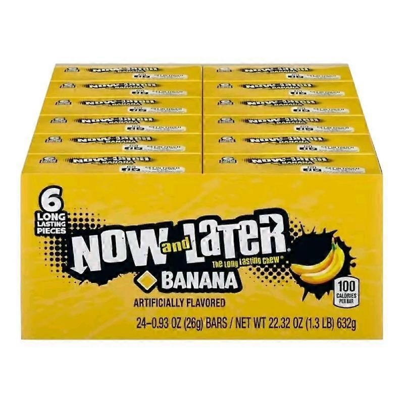 Now and Later, Banana, Original Taffy Chews Candy, 0.93 Bar, 22.32 Ounce (Pack of 24)