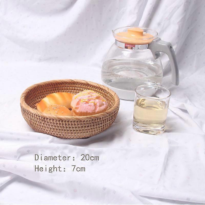 HEMU-Round Rattan Woven Basket, Wicker Fruit Basket, Bread Food, Kitchen Home Decor Organizer