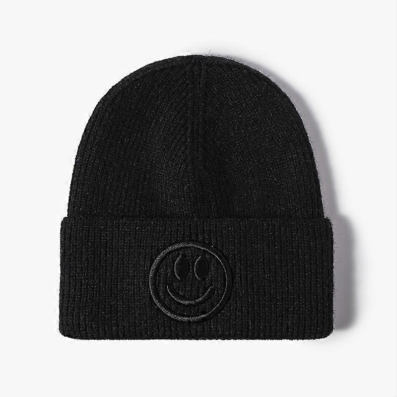 Wool hat female Korean versioncartoonsmiley face embroidered knittedautumn andwintermen'soutdoorwarm thickened brimless cold hat