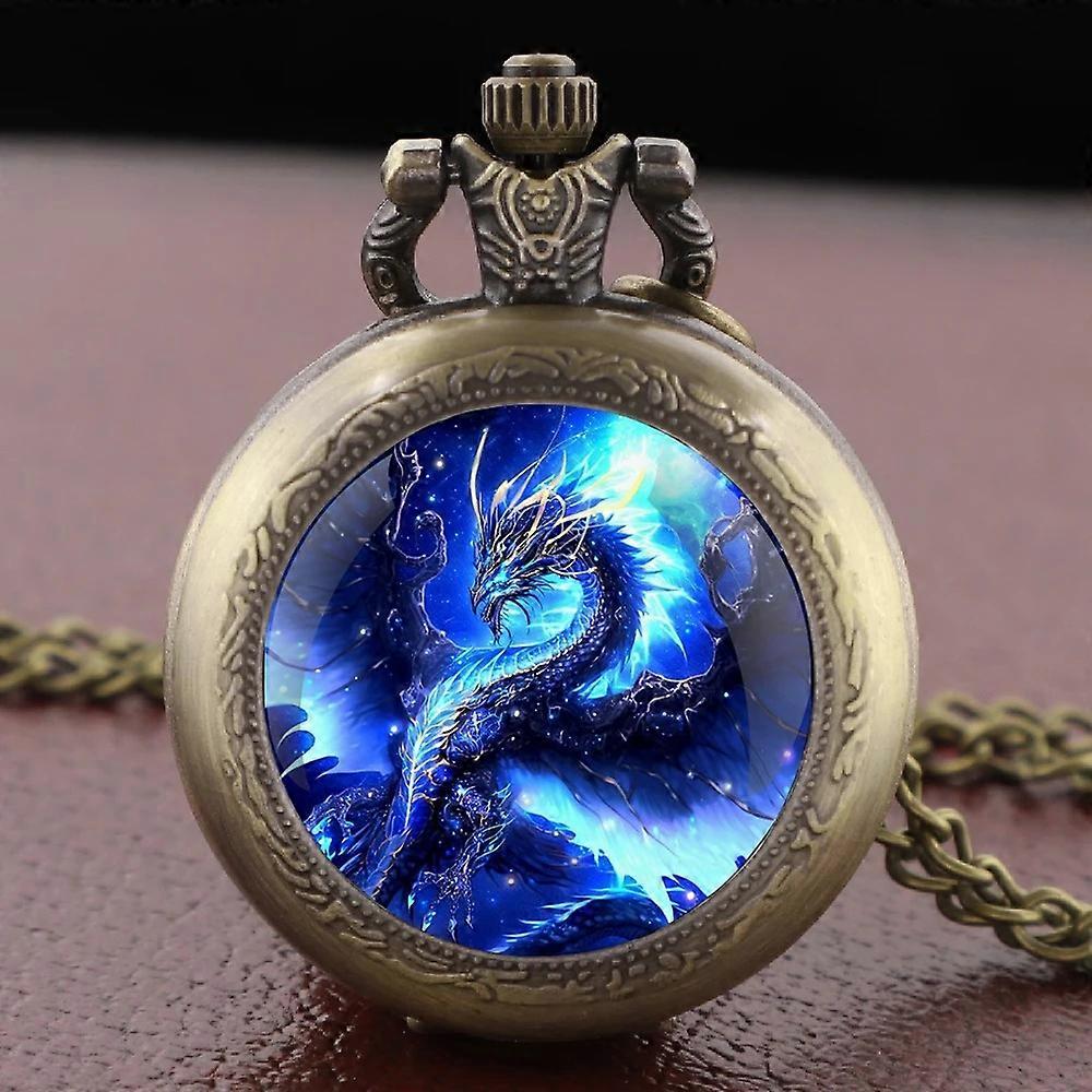 Cool Dragon Glass Dome Pocket Watch Vintage Fashion Boys Girls Necklace Pendant Clock Kids Exquisite Gifts Reloj De Bolsillo