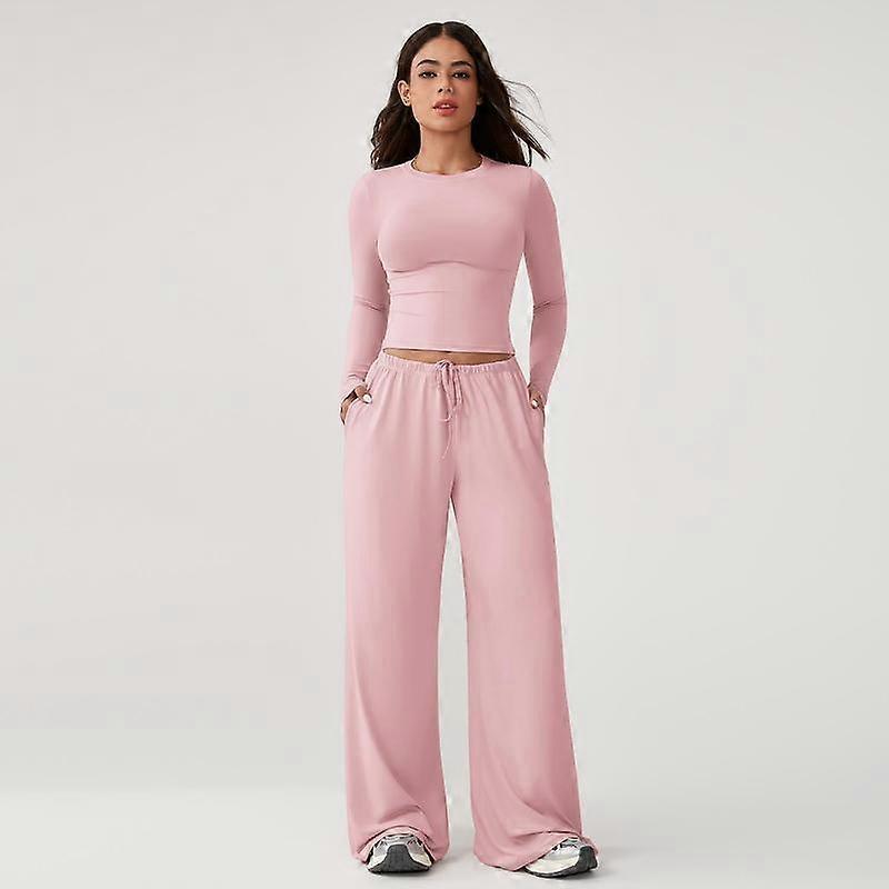 TimeOFF Women's 2-Piece Activewear Set: Long-Sleeve Crop Top & Wide-Leg Pants �C Vertical Feeling, Skin-Friendly & Comfortable, Solves Comfor