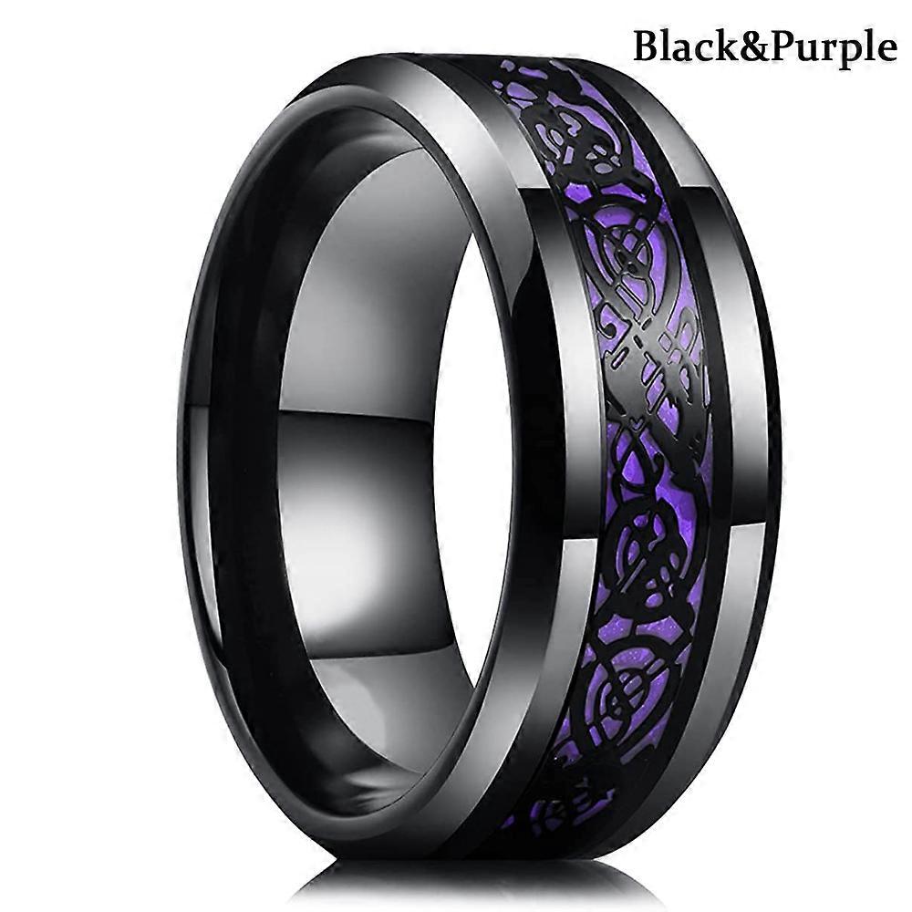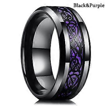 21 Colors 8mm Men's Stainless Steel Celtic Dragon Ring Inlay Red Green Black Carbon Fiber Ring Wedding Band Jewelry Size 6-13