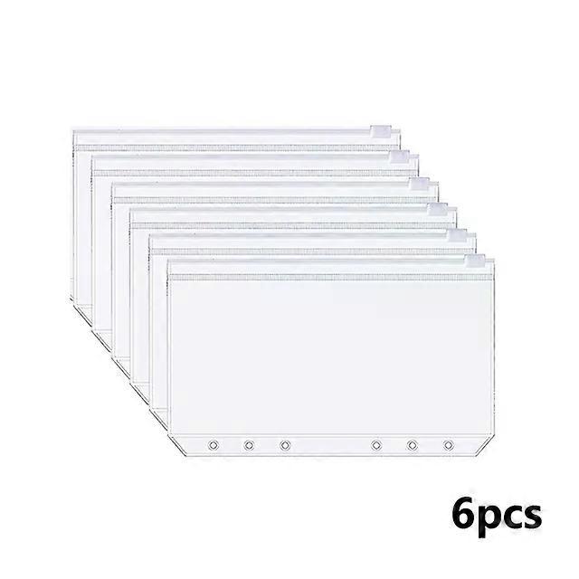 A6 6-Hole Binder Pockets Waterproof PVC Cash Budget Envelopes Zipper Binder Pouches for Notebook Planner Journey Binders