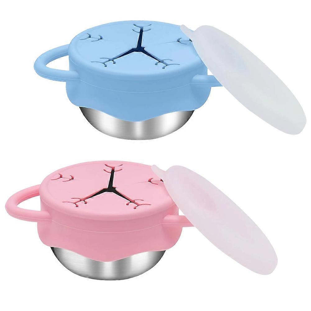 2 Pack Toddler Snack Containers -13.5oz Stainless Steel Snack Cups with Snowflake Silicone Lids & Handles