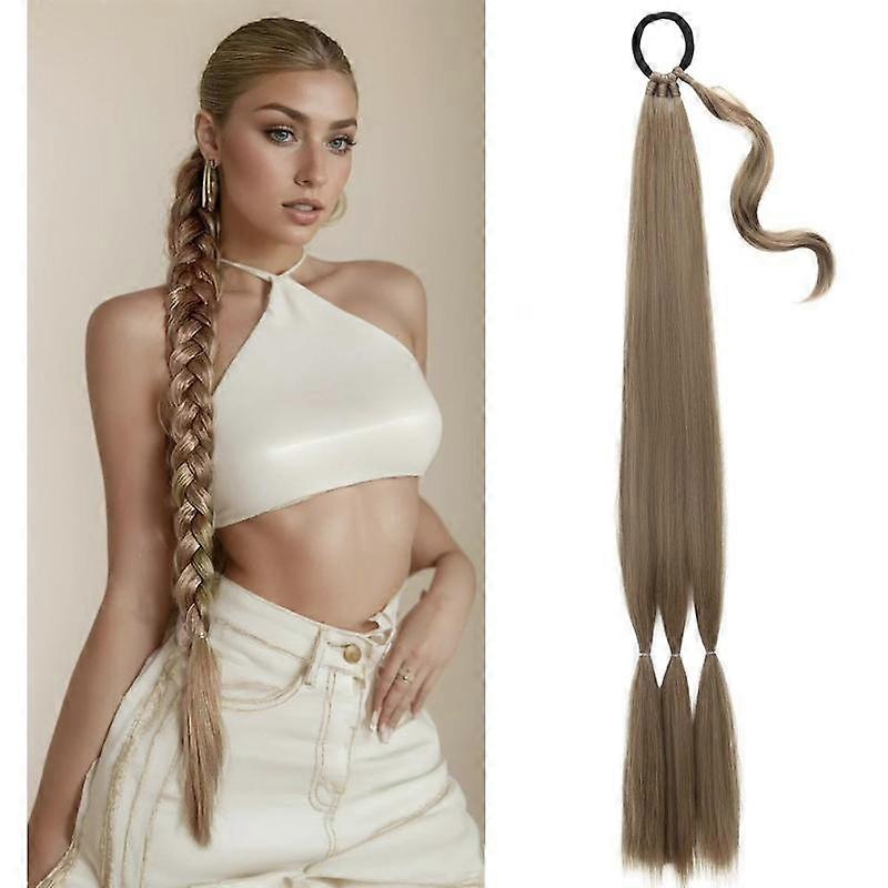 TwiceBeauty DIY Long Braid Ponytail Extension with Elastic Tie 32inch Straight Sleek Wrap Around Hair Extensions Braid Pony Tail Natural Sof