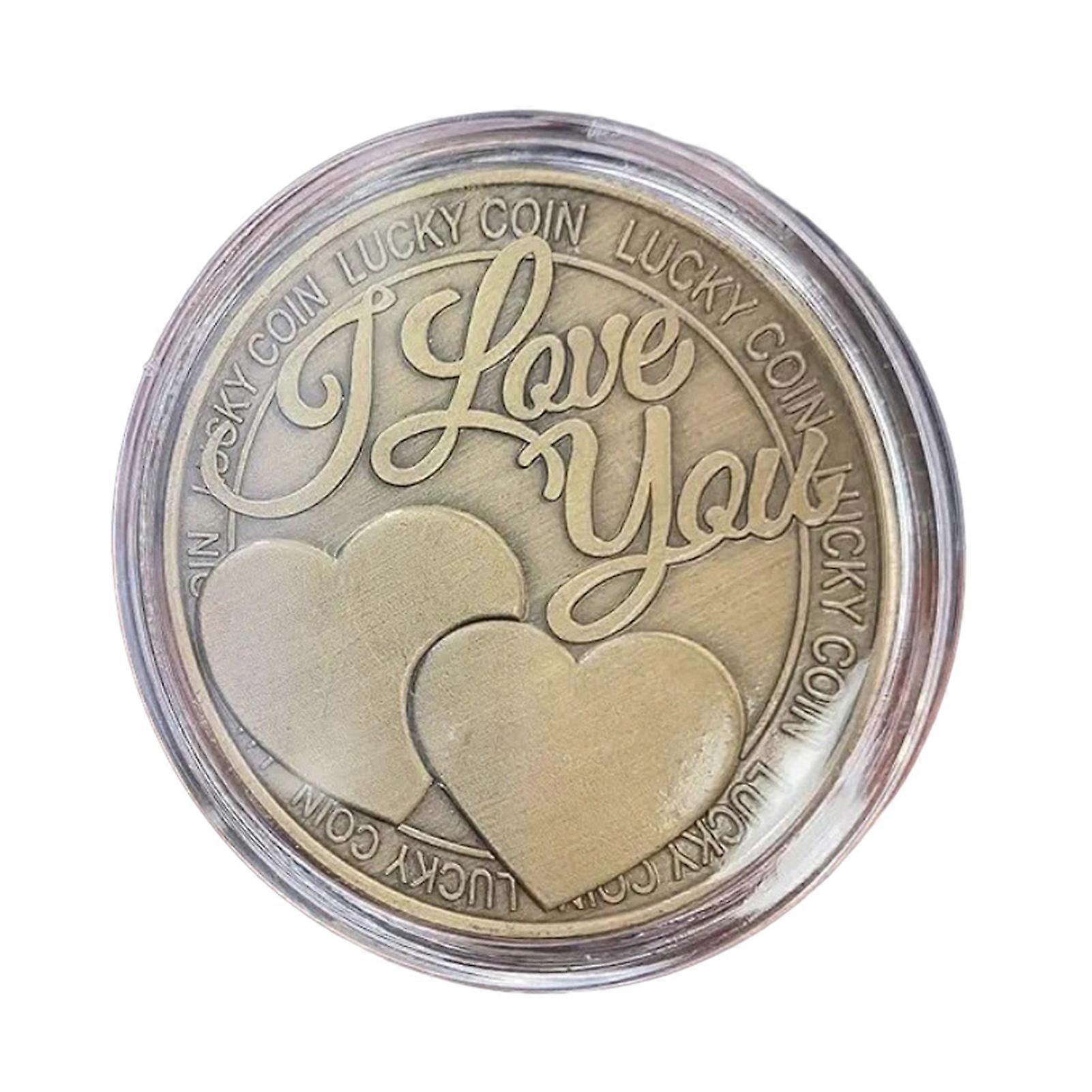 Lucky Coin is made of quality alloy, high strength and durable, size: 1.57 in x 0.12 in Each coin comes encapsulated in an acrylic clear case to avoid oxidation One side shows two hearts and Words "I LOVE YOU" The other side shows four leaf clover and sayings "I love you more than I can say" Great to give as a gift from wife to husband, husband to wife, parents to children, boy to girlfriend, girl to boyfriend, for good luck in scratching off lottery tickets or keeping as a pocket token or poker guard on the table at the casino Description: This lucky coin features a retro metal texture crafted from imitation bronze with a subtle aged finish, evoking a classic and nostalgic charm. The front showcases "I Love You" in elegant cursive alongside two overlapping hearts, symbolizing deep affection, ideal for Valentine's Day or romantic occasions. The back bears the heartfelt message "I love you more than I can say," expressing sincere emotions perfect for gifting. Edged with "LUCKY COIN" inscriptions and adorned with a four-leaf clover motif, it brings wishes of luck and happiness to love. Expertly crafted with clear, delicate relief carvings, this coin is a meaningful keepsake or holiday gift for couples. Item Name: Lucky Coin Material: Metal Applicable Scenarios: Home, Anniversaries, Festivals, Love Tokens, Engagements, Weddings, Anniversaries Style: Simple Style Features: Romantic, Stunning, Charming Size Details: With Plastic Shell: 4.5cm x 4.5cm x 0.6cm/1.77" x 1.77" x 0.24" (Approx.) Coin: 4cm x 4cm x 0.3cm/1.57" x 1.57" x 0.12" (Approx.) Notes: Due to the light and screen setting difference, the item's color may be slightly different from the pictures. Please allow slight dimension difference due to different manual measurement. Package Includes: 1pc: 1 x Lucky Coin or 2pcs: 2 x Lucky Coins or 3pcs: 3 x Lucky Coins