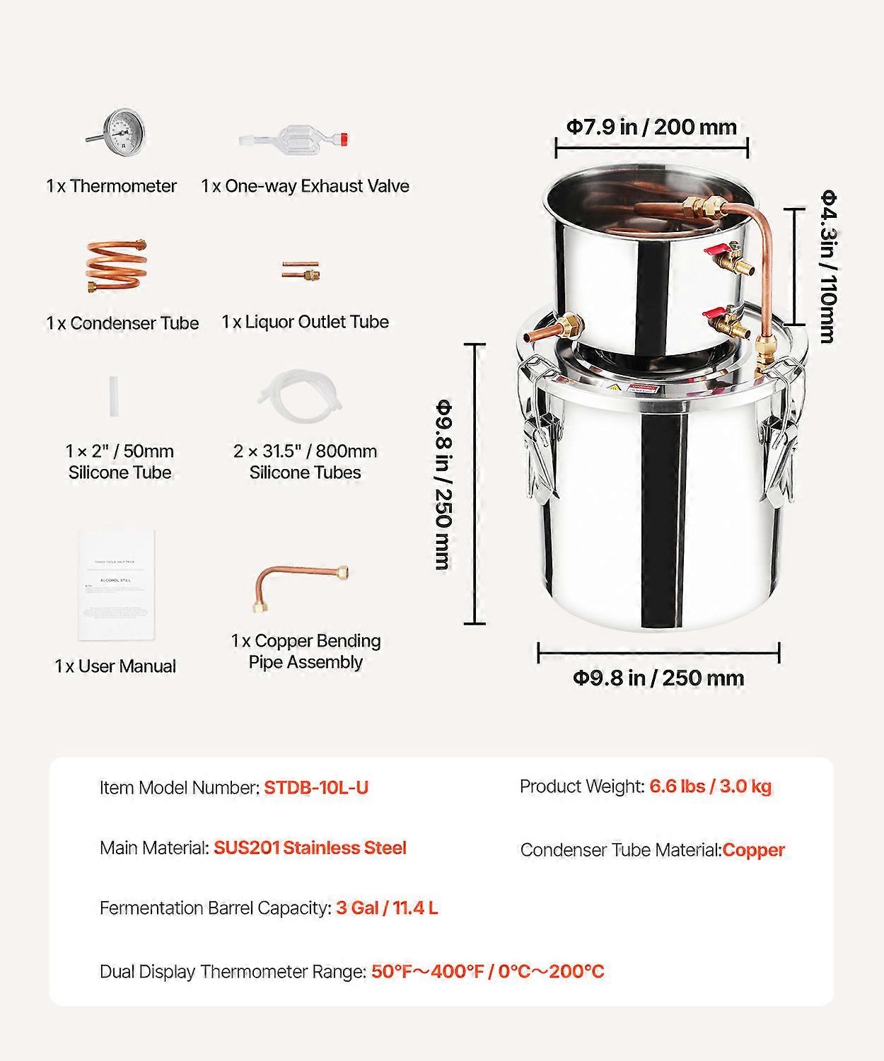 SucceBuy 3 5 8 Gallon Alcohol Still Stainless Steel Water Alcohol Distiller with Copper Coil Brewing Refining Fermentation Kit
