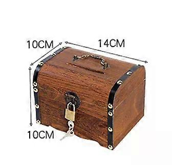 Wooden Retro Treasure Chest Piggy Bank Decorative Box with Lock Coin Banknote Storage Box Safe Money Box Gift