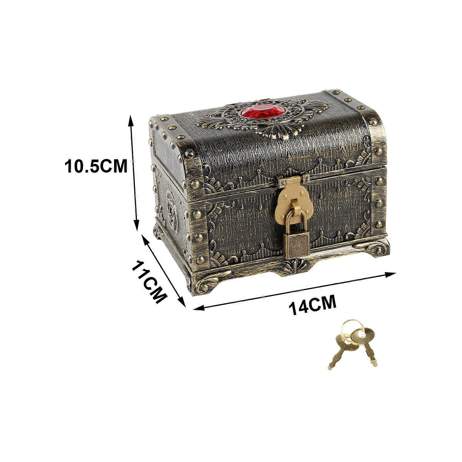 Vintage Pirate Theme Kids Treasure Chest Coins Gems Jewelry Treasure Box with Lock for Halloween Party Prop Kids Birthday Gift