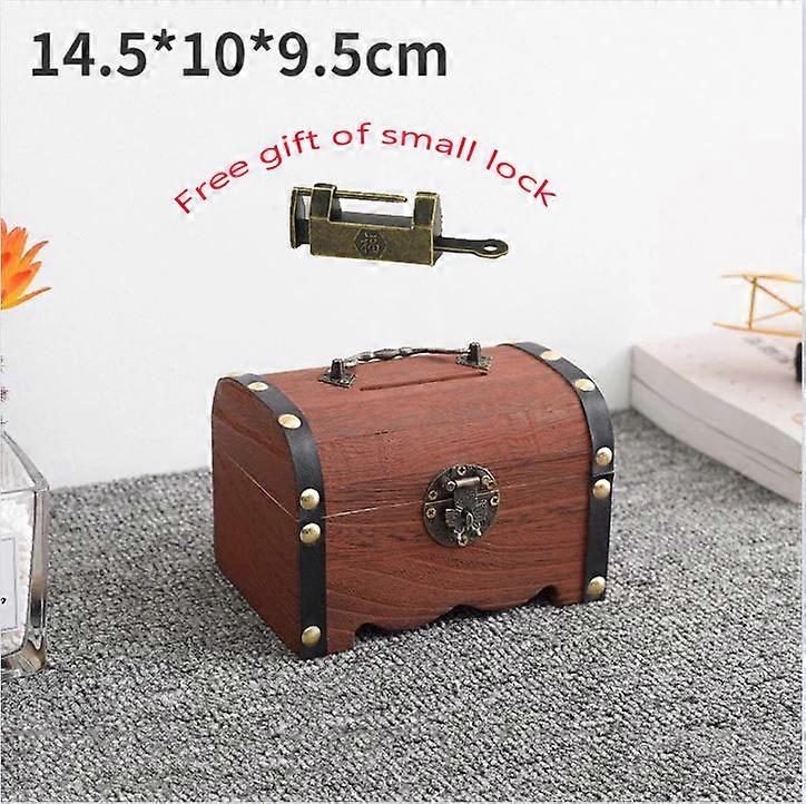 Box Wooden Treasure Bank Storage Chest Piggy Wood Vintage Money Coin Lock Boxes Jewelry Saving Pirate Organizer Decorative Gift