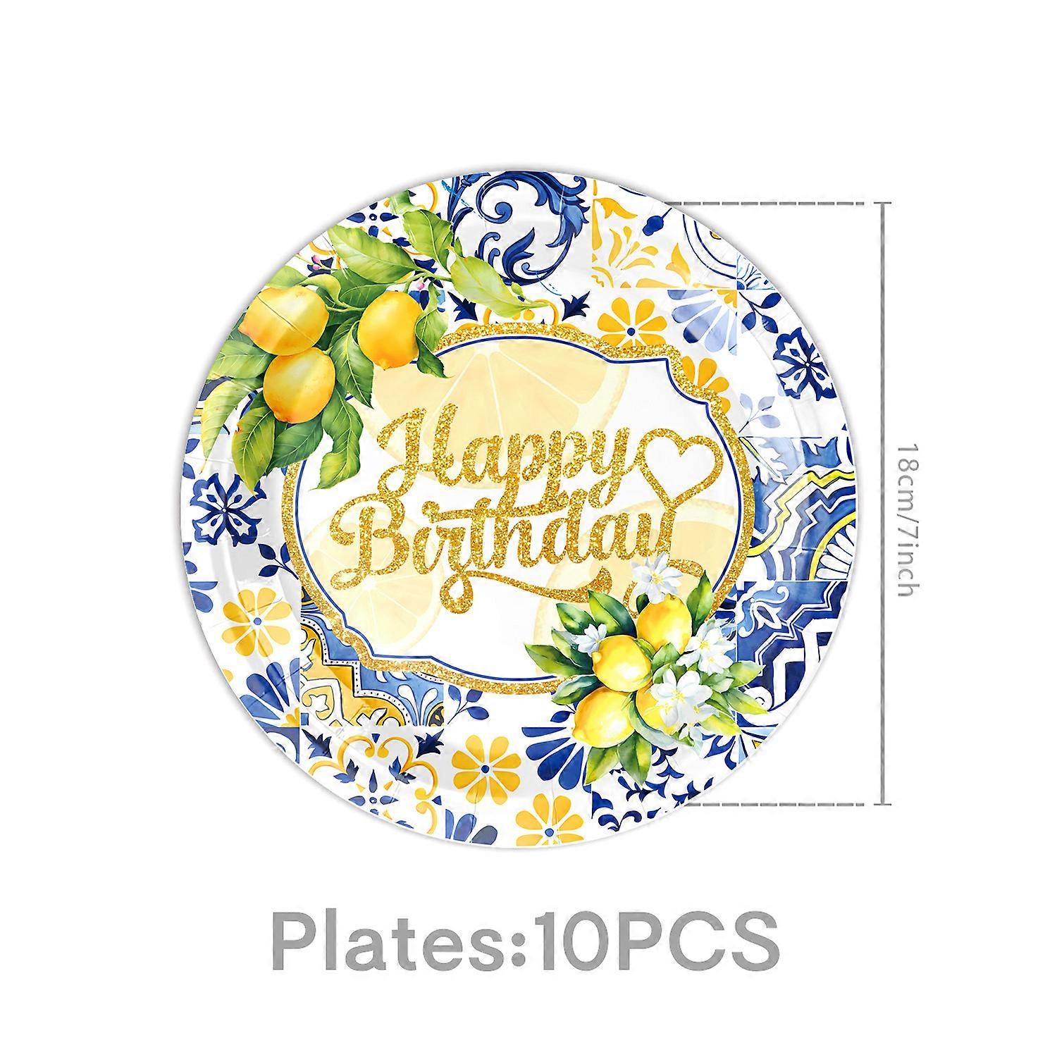 Lemon Blue and White Porcelain Party Dinnerware Set, Birthday Party Disposable Paper Plates, Party Decorations, Scene Setup