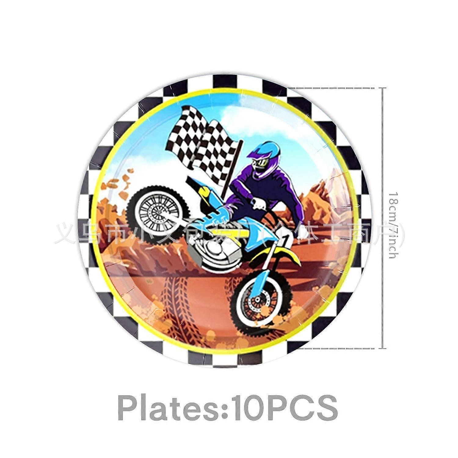 New cool motorcycle-themed boys' birthday party racing disposable paper plates, paper cups, tissues, and banners.