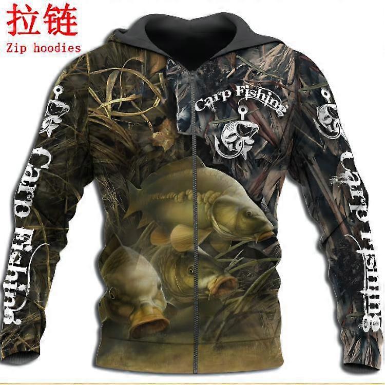 Plus Size Zippered Men's Sweatshirt for Fishing, Lure Fishing, and Sea Fishing - Hooded Pullover Sweatshirt/Baseball Jacket