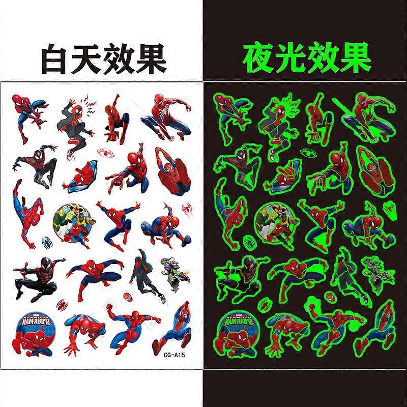 Glow-in-the-dark Spider-Man disposable temporary tattoo stickers for children, birthday parties, and water transfer printing.